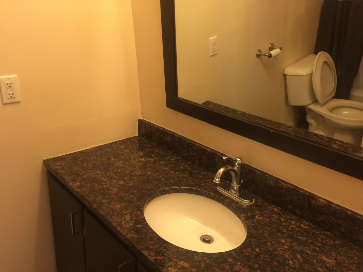 *The bathroom has been updated with granite vanity countertop, extractor fan, and tile floor.