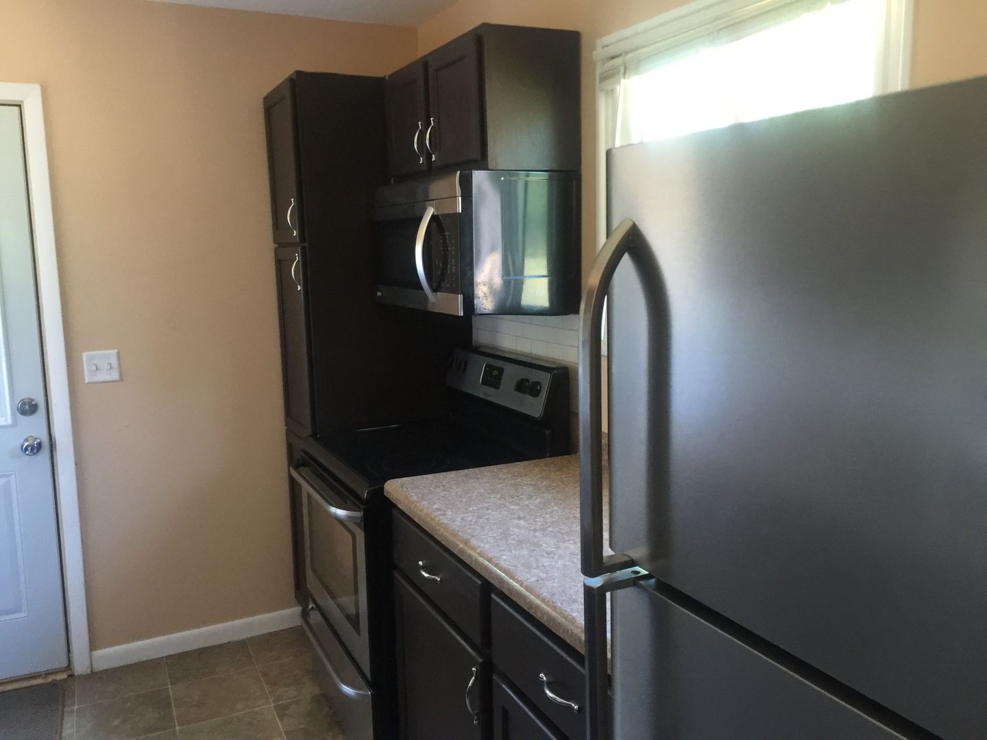 *Kitchen has been designed and completely remodeled by interior designer Jackie B., with newer cabinets, custom countertops, stainless steel dishwasher, range, fridge/freezer, and microwave.